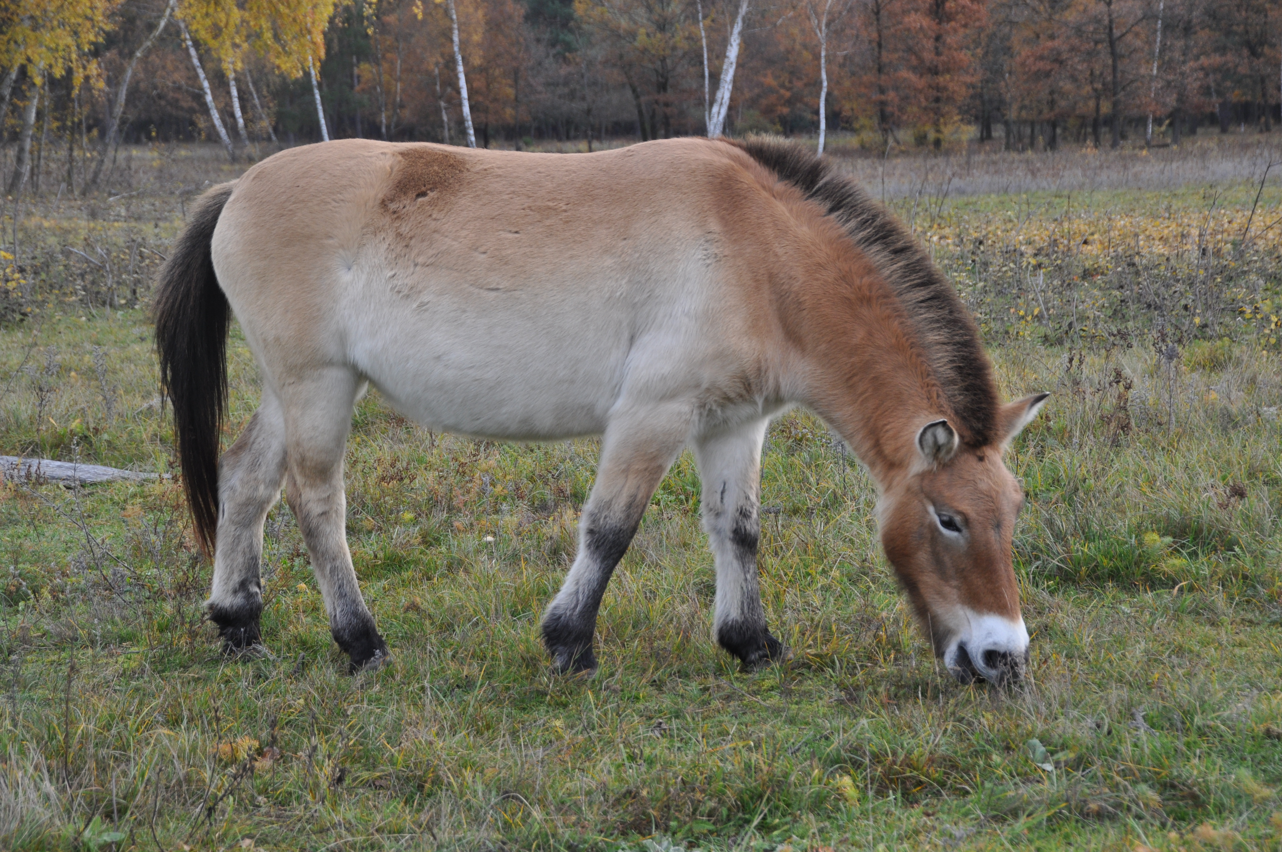 • Äußere Kennzeichen: Kippmähne, Beinstreifen, helle Fellfarbe